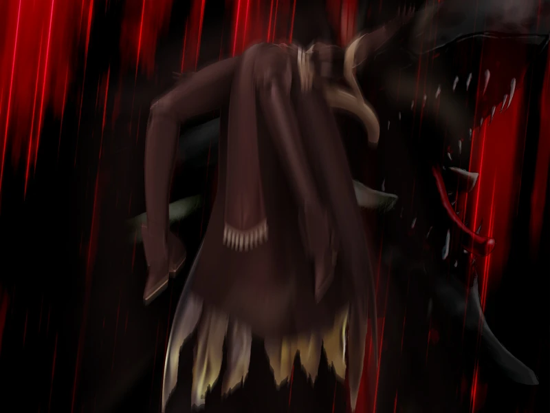 Avaritia defending himself from Shiori's attacks